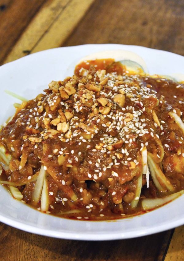 At Teh Tarik Place, Rojak Pasembor is served with juicy fried tofu, deep fried fritters, cucumbers, and hard boiled eggs, covered with sweet, think, and spicy gravy. A generous amount of sesame and crunched peanut was added on top too for the extra fragrance and bite texture.