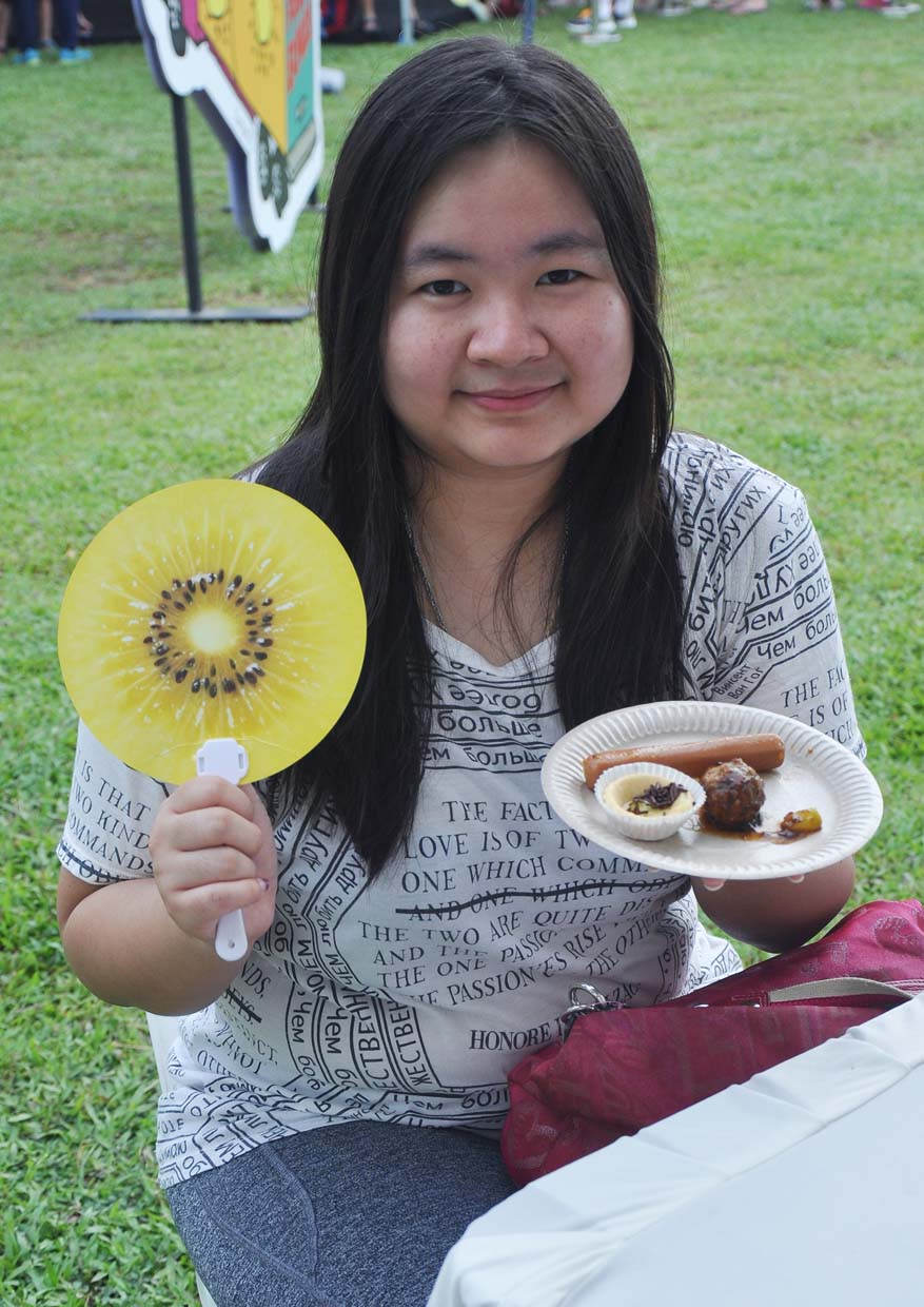 Participants were having fun at the Smoothie Bike station, where they need to ride the bike to blend their own delicious kiwifruit smoothies.