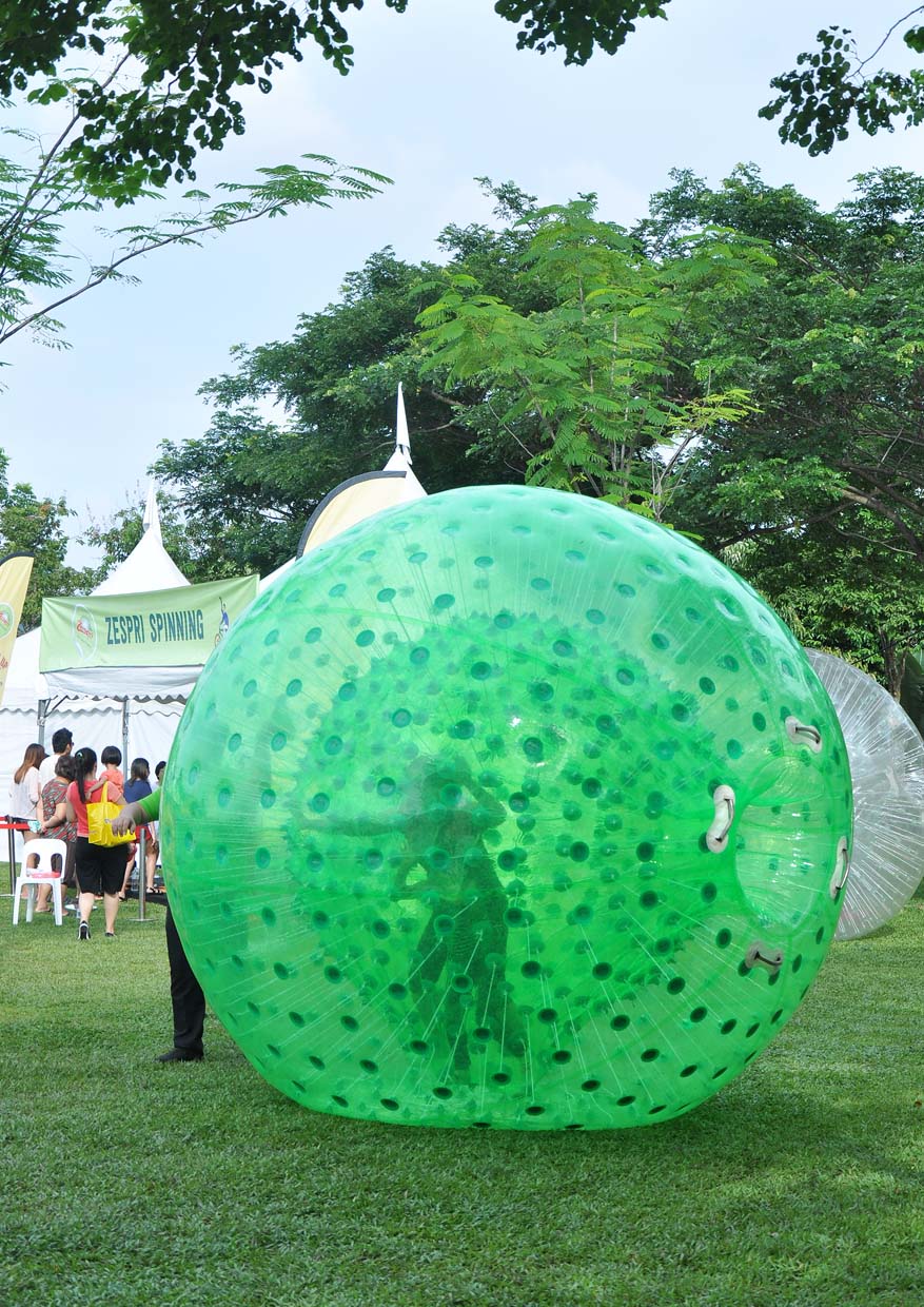 Family and friends gathered together at the Zespri® SunGold Kiwifest to enjoy healthy kiwifruit treats and fun, engaging and educational activities like this Zorb Ball, starting the day with Zespri® Kiwifruit for a healthy and happy life full of goodness, vigour and vitality.