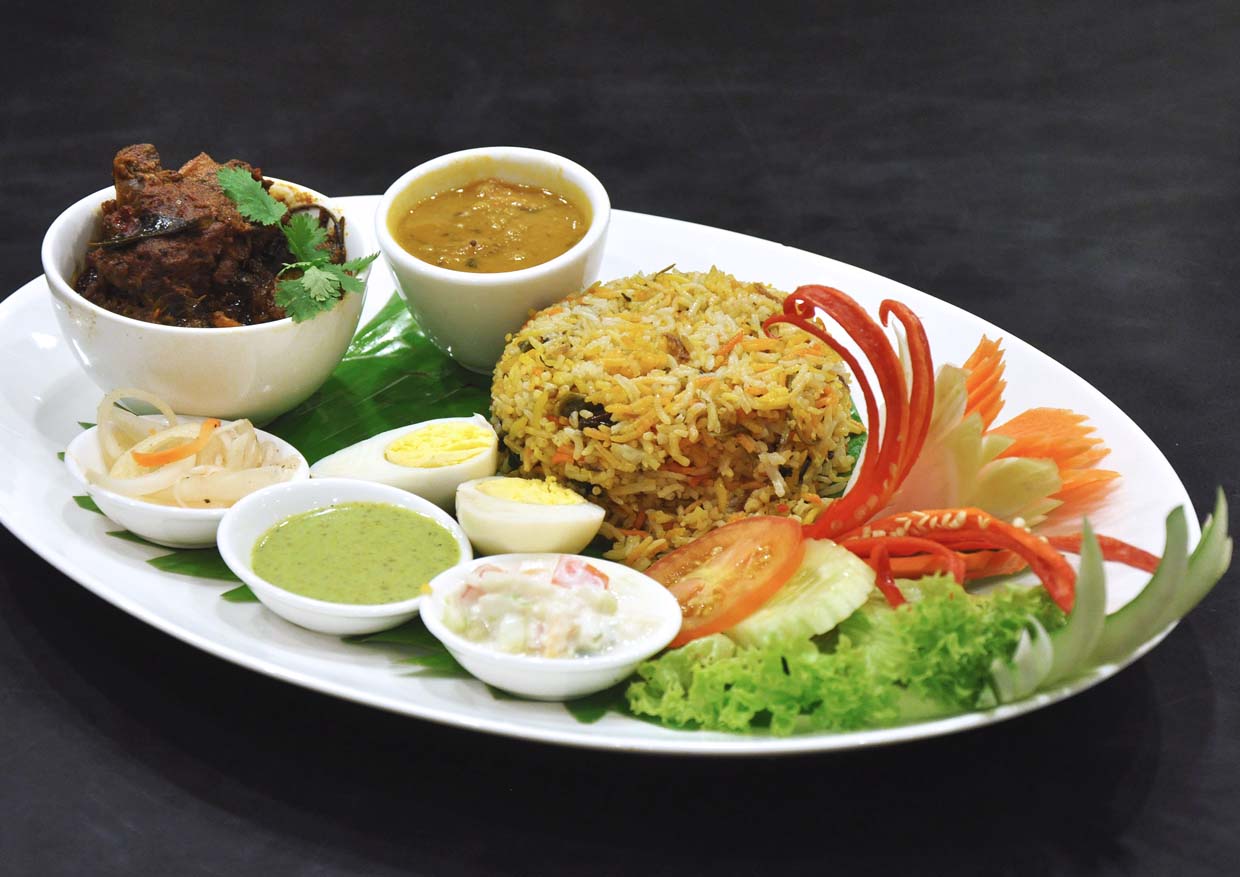 Legendary Lamb Briyani served with condiments