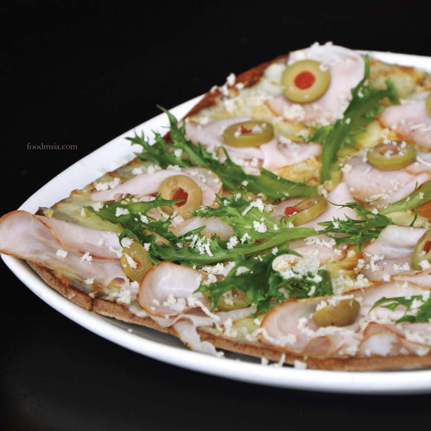 I always enjoy thin-crust pizza with tomato sauce base, and this Kassler Flade (RM39) features an interesting combination of ingredients that I have not tried yet, mozzarella and thin slices of smoked pork loin topped with olives and freshly grated horseradish which gives the distinctive pungent taste.