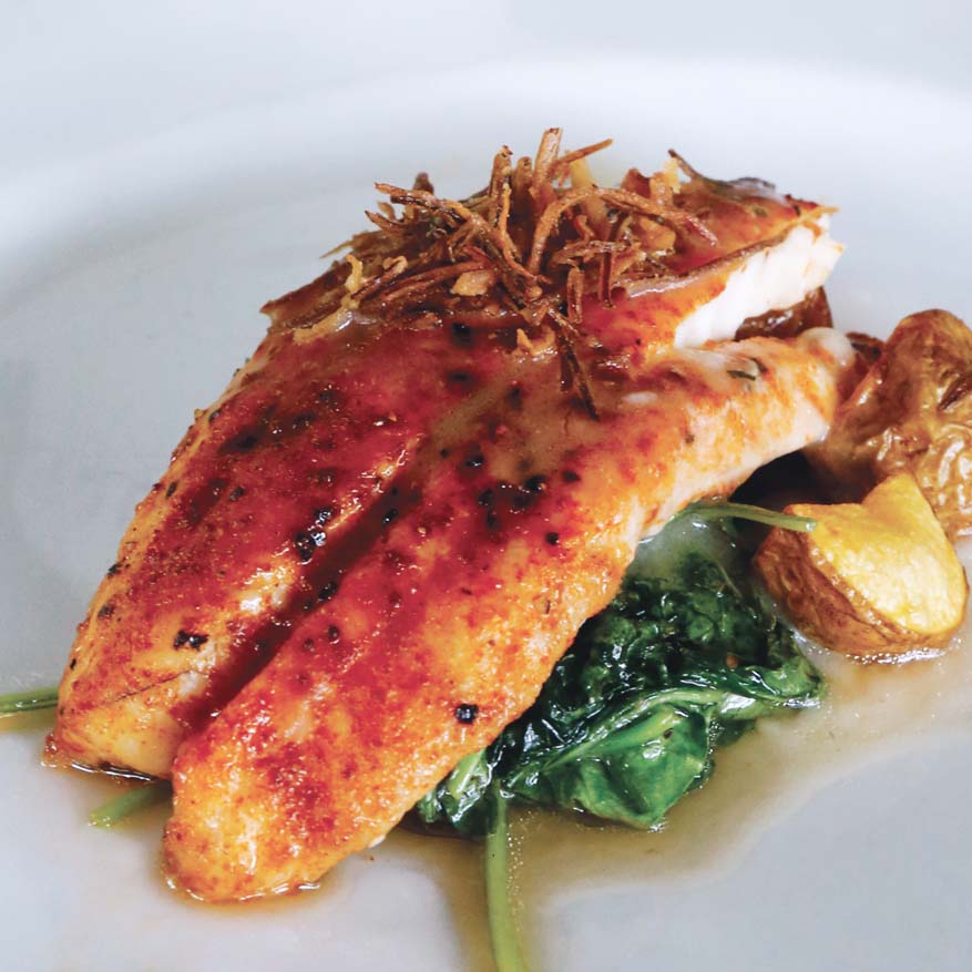 Indulged the mouth-watering traditional Sole Meuniere with baby spinach and crispy leek together with the deliciously Cloudy Bay Chardonnay 2014.